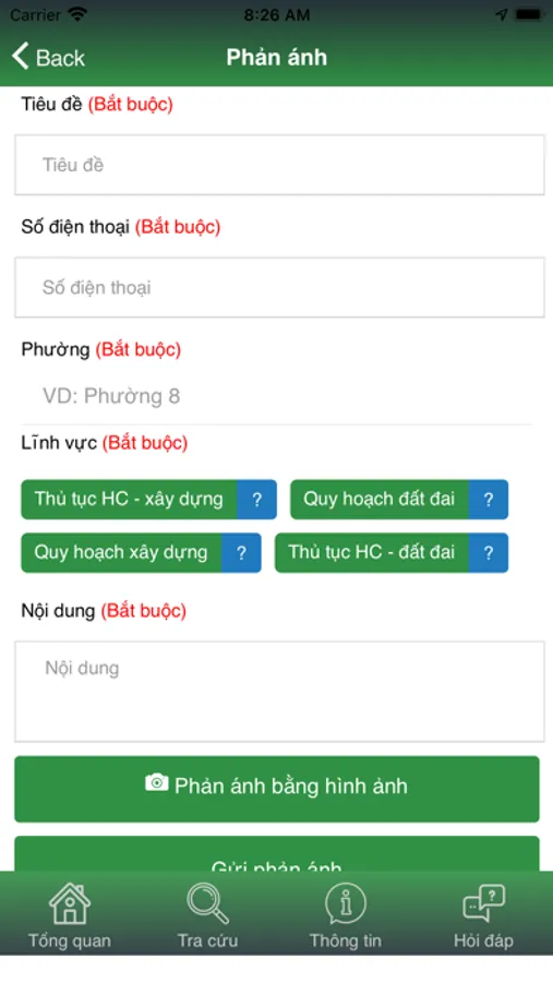 * Chức năng phản hồi có sử dụng hình ảnh, vị trị của hình ảnh, vị trí gửi phản hồi để phân loại dữ liệu phản hồi và chọn lọc đơn vị tiếp nhận xử lý được chính xác nhất và nhanh nhất.