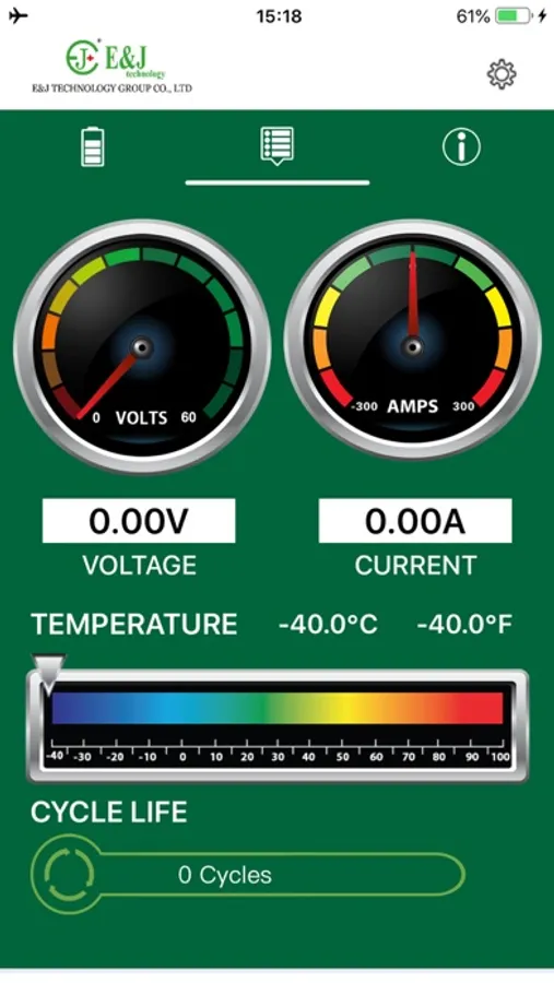 The Apps main feature is to monitor the details of the E&J Lithium battery. The Phone via Bluetooth connectivity will monitor the following information from the battery.
