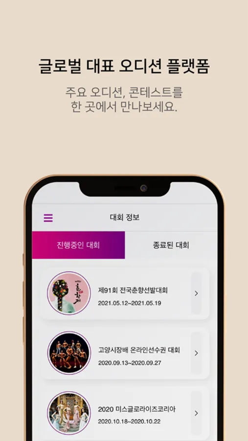 마이스타픽에서 공정하고 투명한 글로벌 대표 오디션, 콘테스트를 만나보세요.