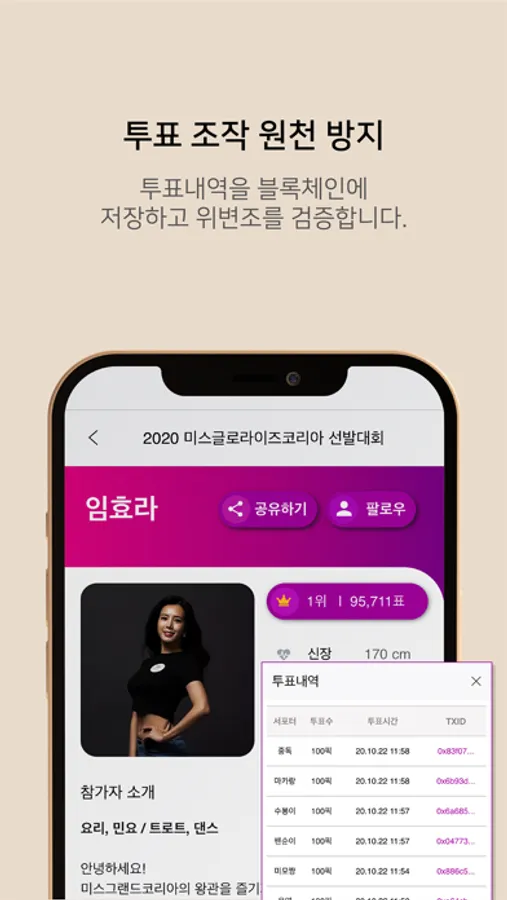 마이스타픽은 블록체인을 활용해 투표조작을 원천 방지한 오디션 플랫폼입니다.