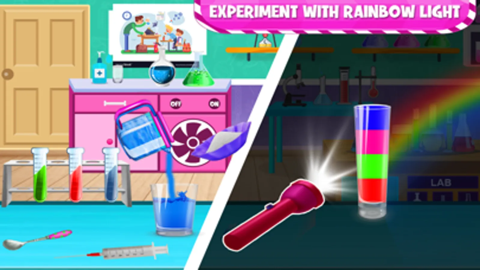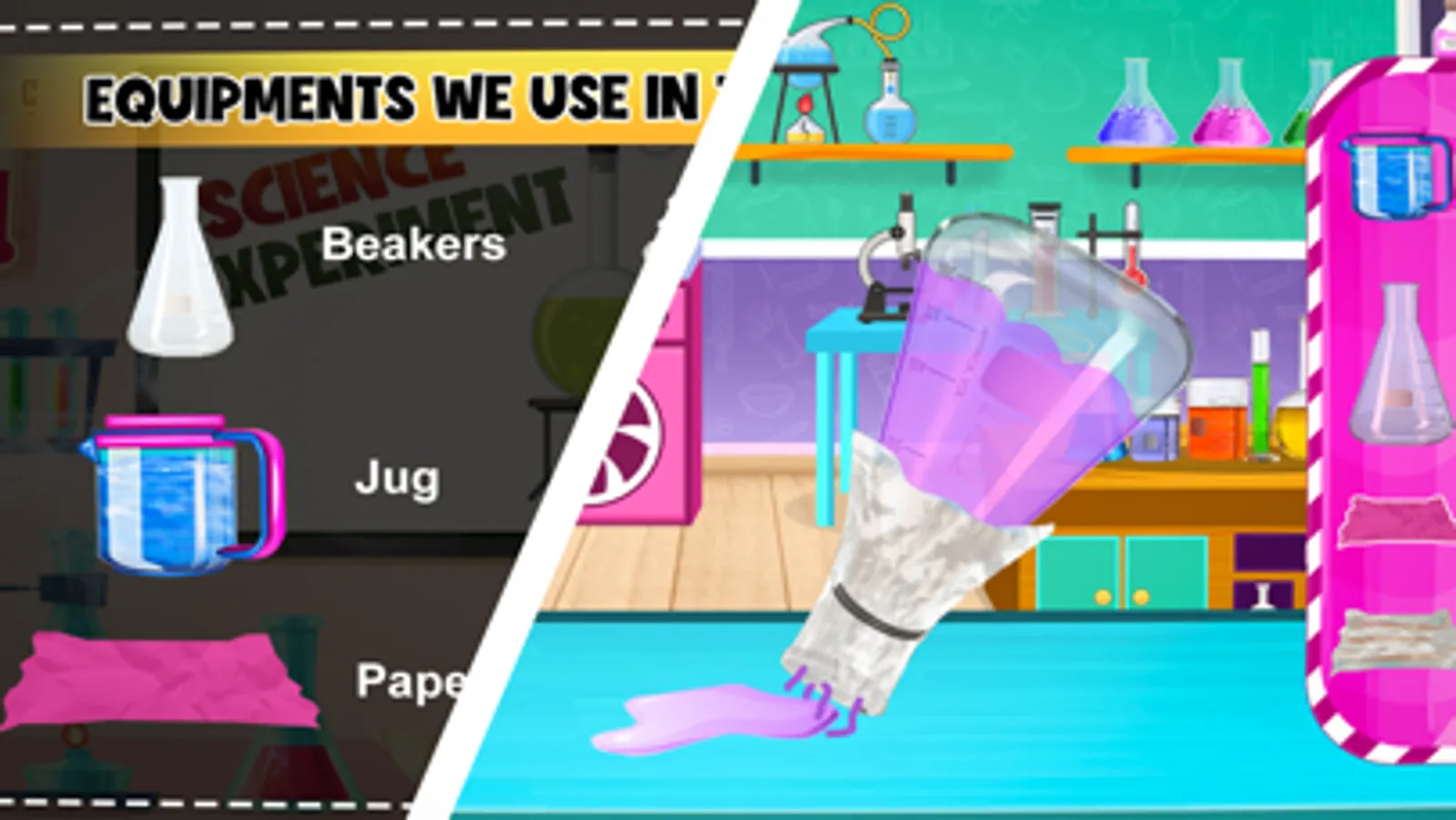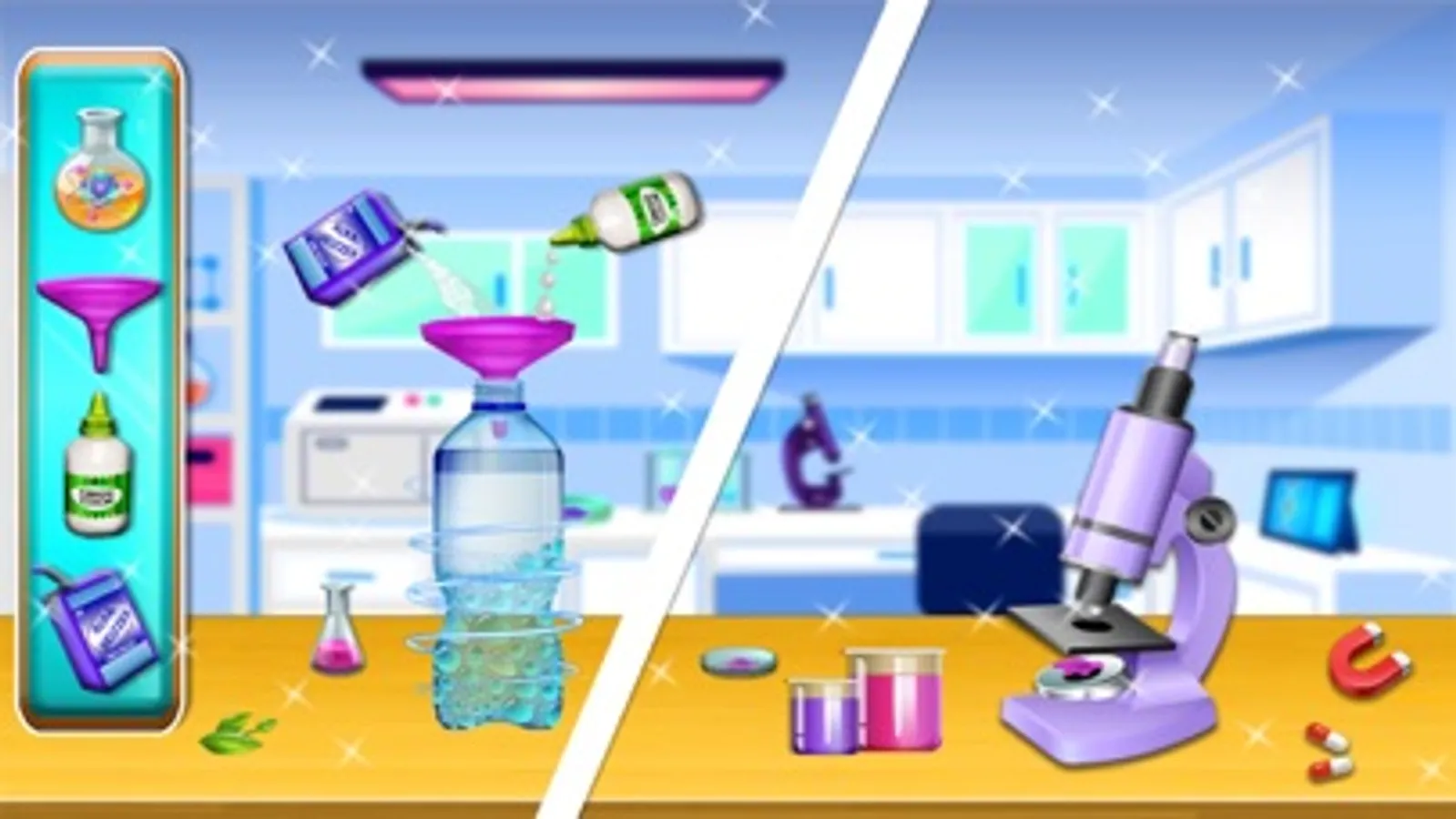 Let's enter into the amazing world of science experiment in school lab where you will learn different experiments with lots of fun. The School lab is open for creative science students where you will learn to perform numerous creative scientist tricks and hacks. Inventive science students where they can create and build some type of machines and can do physics and chemistry tests and experimentation. Entirely crazy apparatus are free to use so pretend play like a scientist to experience virtual simulator of science laboratory. Verify several science theories with modest and interesting lab hacks. In Science experiment in school lab your will learn basic science to reveal some basic & exciting facts and tricks about science. Do perform some wonderful chemistry and physics experiments and see the amazing chemical results in your science lab.