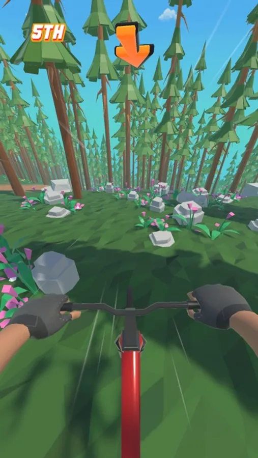 Race down the hill on your bicycle and finish first, avoid the obstacles on your way and race as fast as you can!