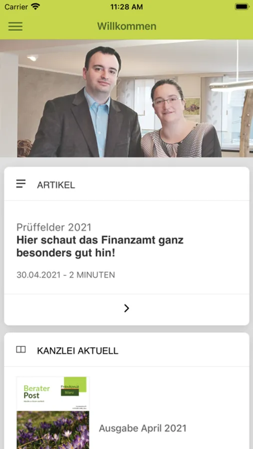 Mit unserer App haben Sie die Möglichkeit, Ihre Belege bequem einzuscannen und hochzuladen oder an uns zu versenden. Auch unsere Beraterpost, in der die wichtigsten und interessantesten Neuigkeiten monatlich für Sie zusammengestellt werden, sowie viele weitere laufende Informationen zu verschiedenen Themen sind in der App abrufbar.