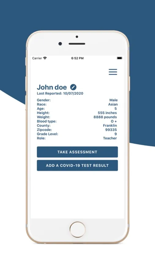 The Potentia Health Registry application includes a daily assessment which securely and safely collects actionable data in real time per any individuals reporting to educational institutions who partner with Potentia to reopen their schools successfully. Items pertaining to COVID-19 symptoms, exposure and testing along with the intention to report to school are tracked and displayed in real time to aid administrative functions. The app also acts as a communicative tool between the school administration and parents.