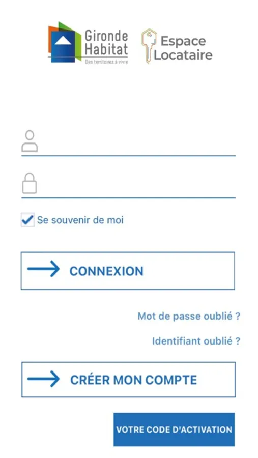 - Si vous utilisez déjà la version web de l’Espace Locataire renseignez les mêmes identifiants