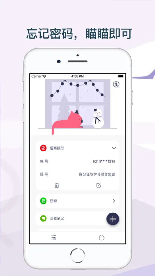 - 忘记密码,打开「喵喵密码」,瞄瞄即可~