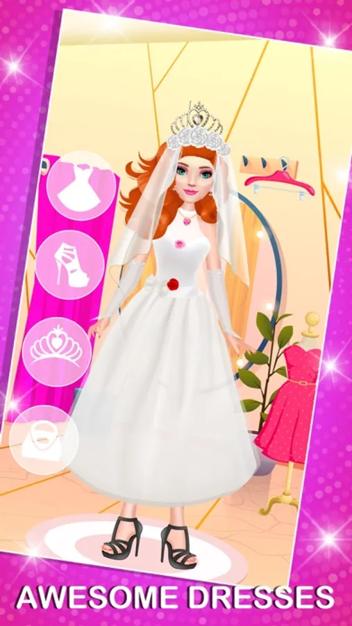 All our dressup games for girls are completely free and offer no in-app purchases. 200 items will make for an enormous number of unique combinations in this super model wedding salon! Dozens of classy dresses, skirts (long and short), shoes, wedding veils, handbags, bouquets and jewelry will let young fashionistas experiment with different bridal outfits for the top models and develop their artistic taste and fashion designer skills.