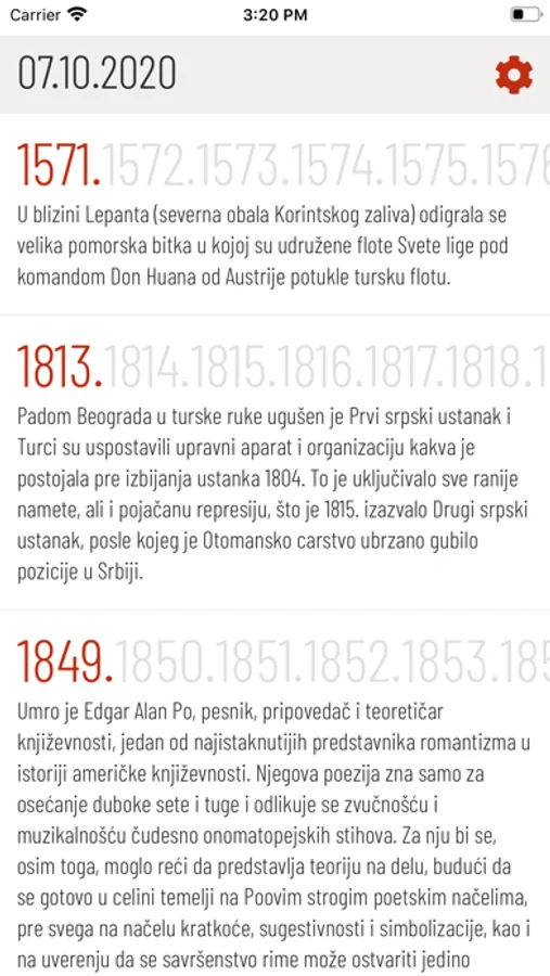 Prikazuju se događaji koji su se dogodili na današnji dan.