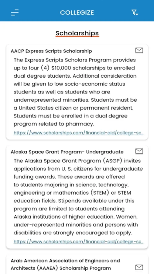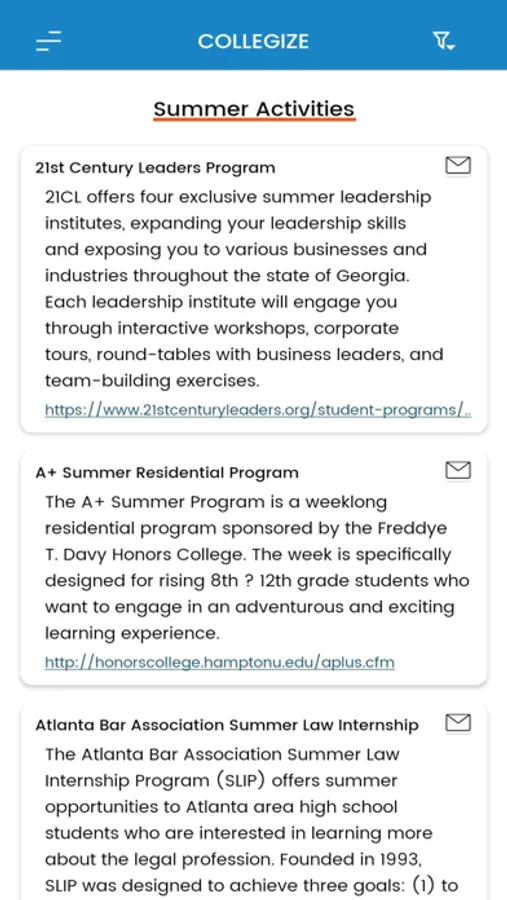 Collegize is a FREE college readiness app designed and built to provide resources and guidance to the families that need it most. Collegize puts guidance, access to college information, scholarships, summer programs / internships, and resources, and peace of right in the palm of your hand.