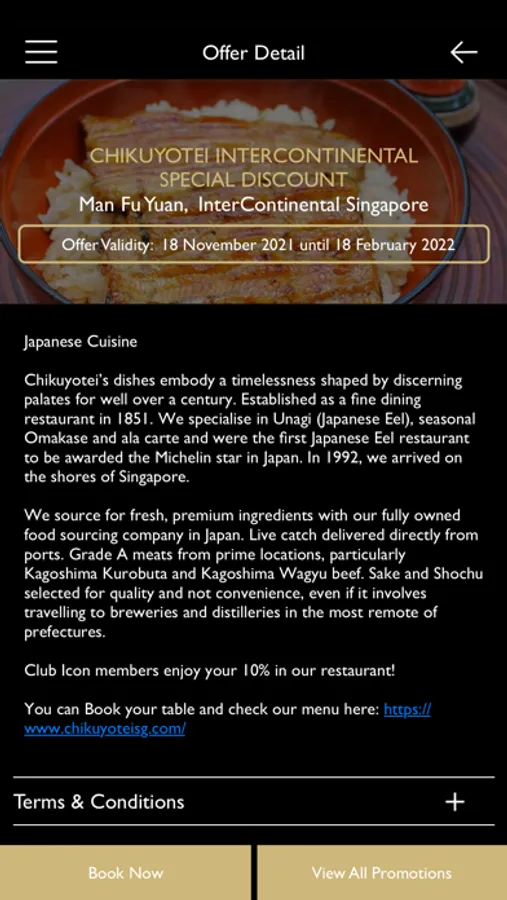 Enjoy exclusive food and beverage privileges and unique dining experience at InterContinental Singapore, the premier dining destination in the heart of Bugis – the arts and cultural precinct of Singapore.