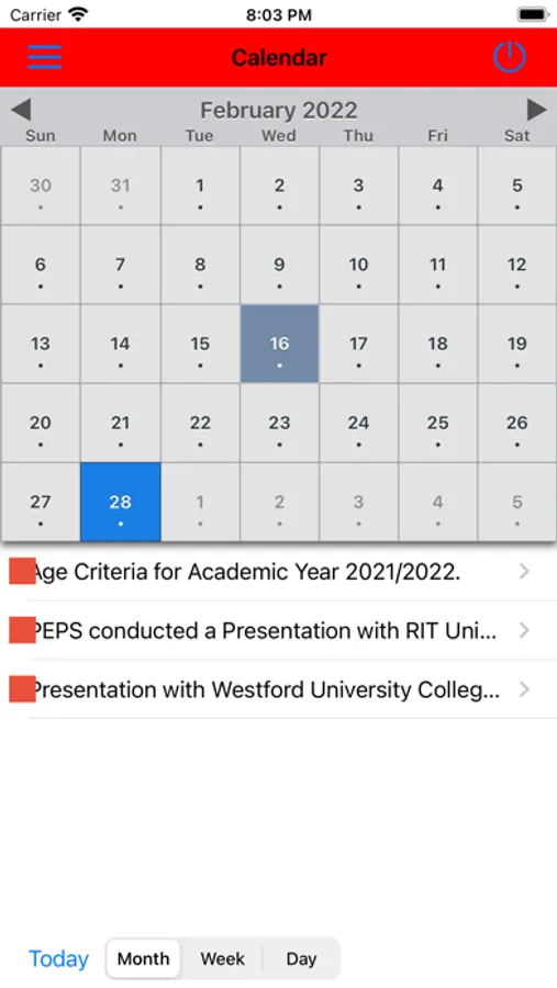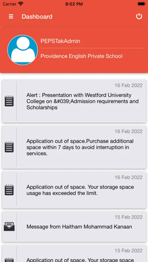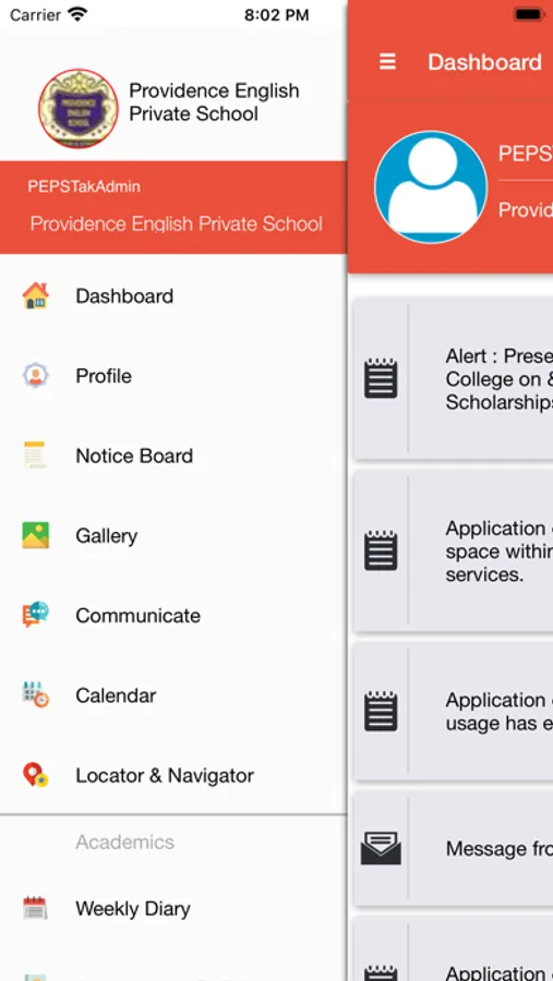 2. Notice Board - To view the details of the events taken place in the school, also can receive periodical alerts of invitations of any events conducting by the school.