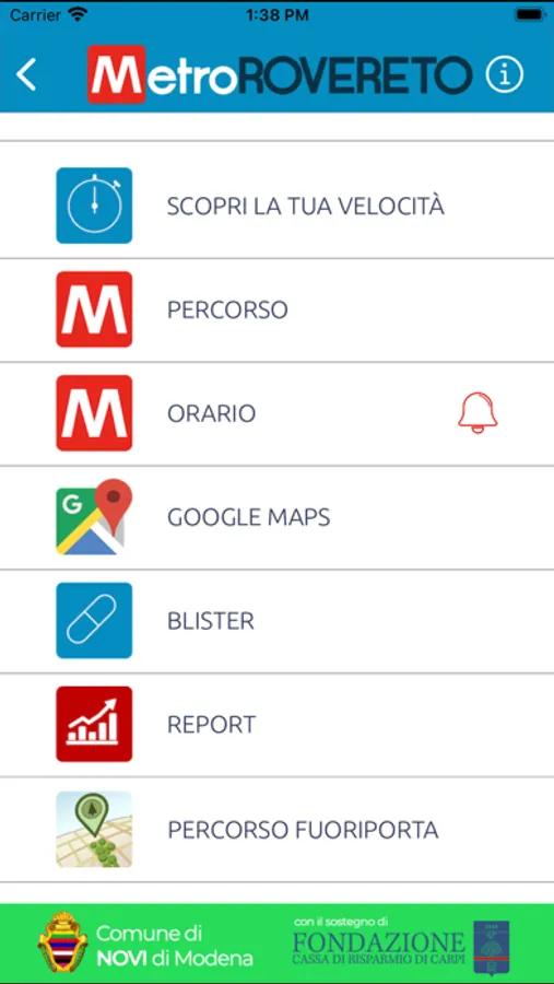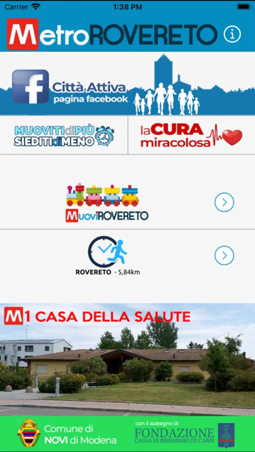 • MuoviROVERETO per l’esercizio fisico della camminata veloce o della corsa lenta sulla metropolitana urbana pedonale, un “percorso vita” protetto e distante da strade ad alto traffico tracciato nel capoluogo Novi del Comune Novi di Modena, nella parte residenziale e densamente abitata.