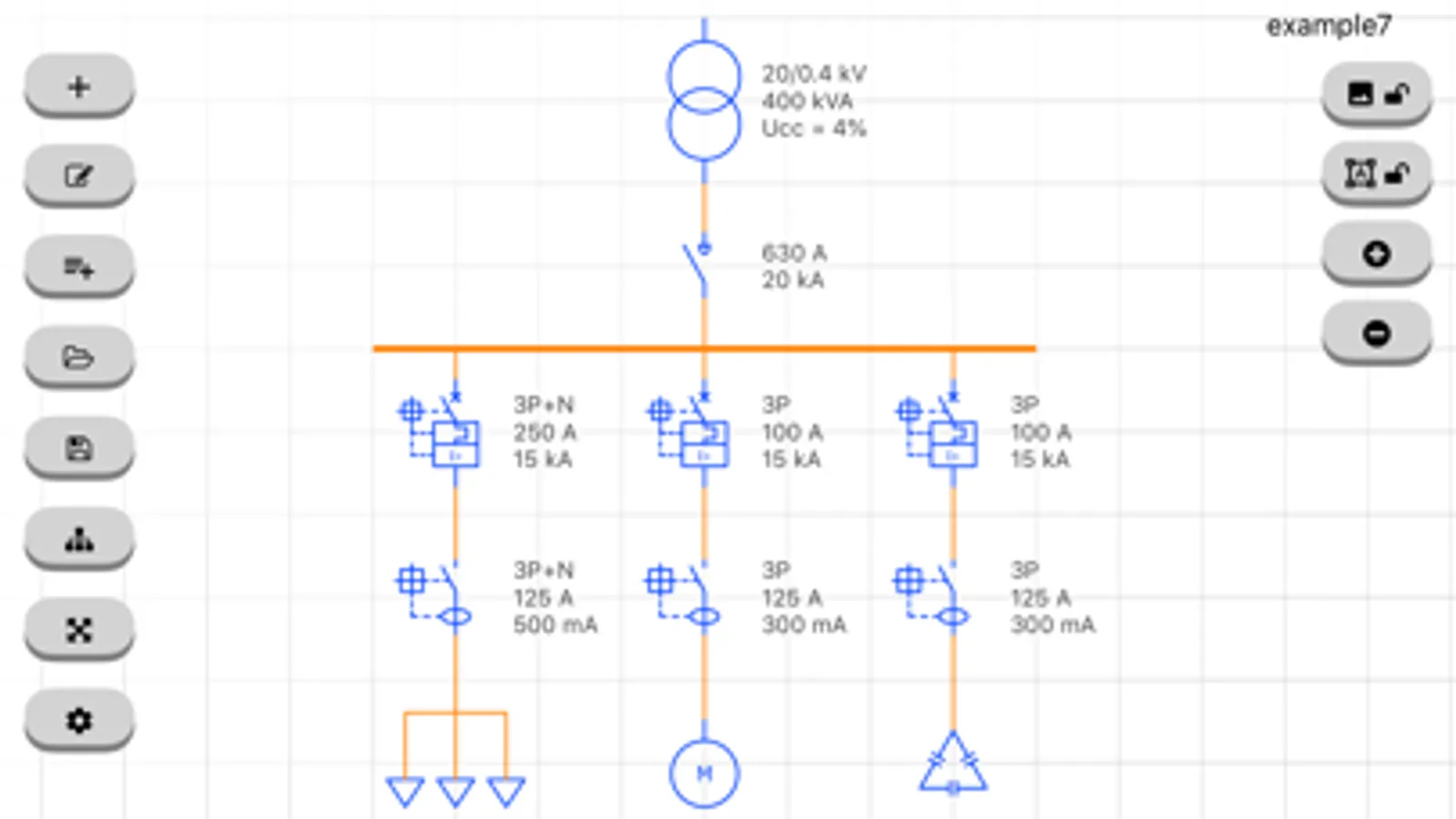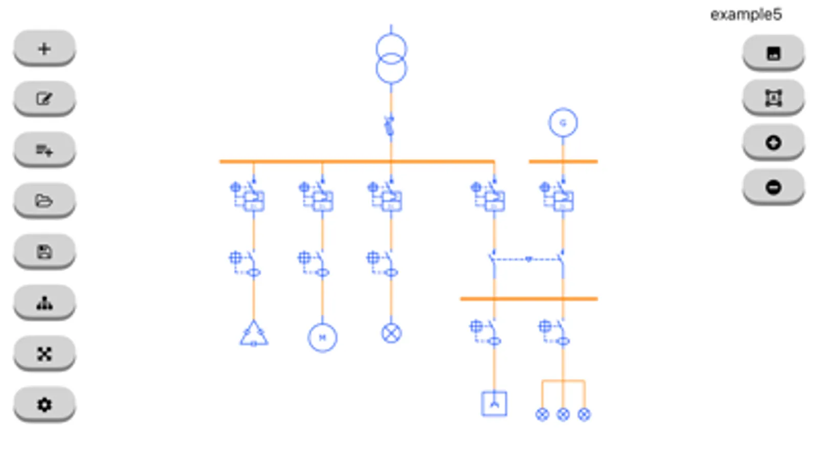 This tool will allow you to create your own one-line diagrams quickly and easily. Simply select the symbol you want to use and drag it to the desired position.