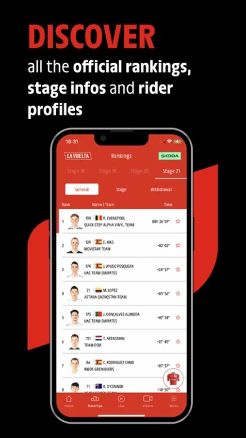 Step into the heart of La Vuelta with the official La Vuelta application presented by ŠKODA