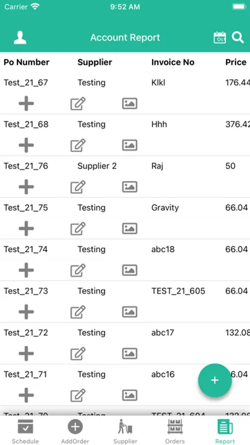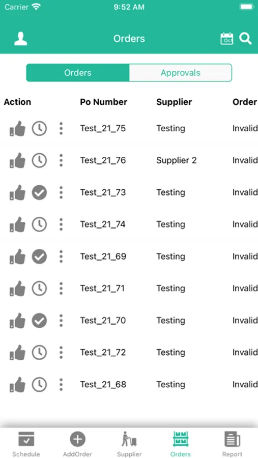 Orders and invoicing page will have all the suppliers information