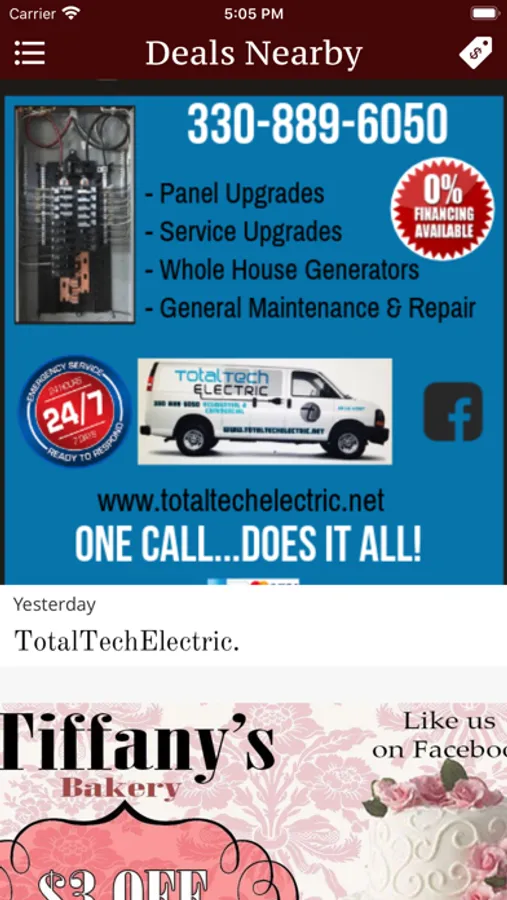 Deals Nearby - Featuring coupons, deals, specials, services, happy hours and more from local businesses around town!