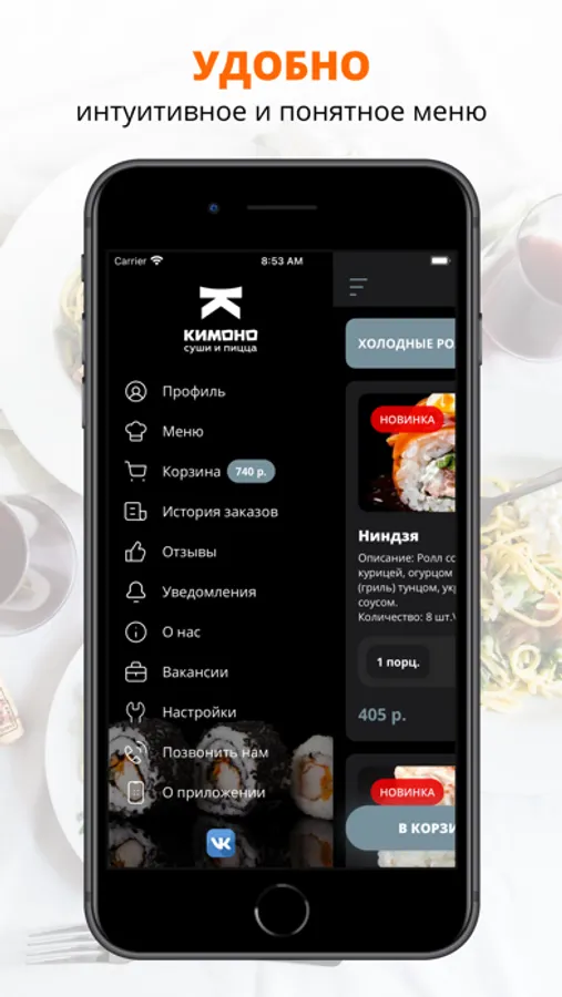 Приложение КИМОНО — это удобный способ заказа еды домой, в офис или на мероприятие! Мы готовим наши блюда из качественных свежих ингредиентов и доставляем еду по г. Челябинску быстро и бережно!
