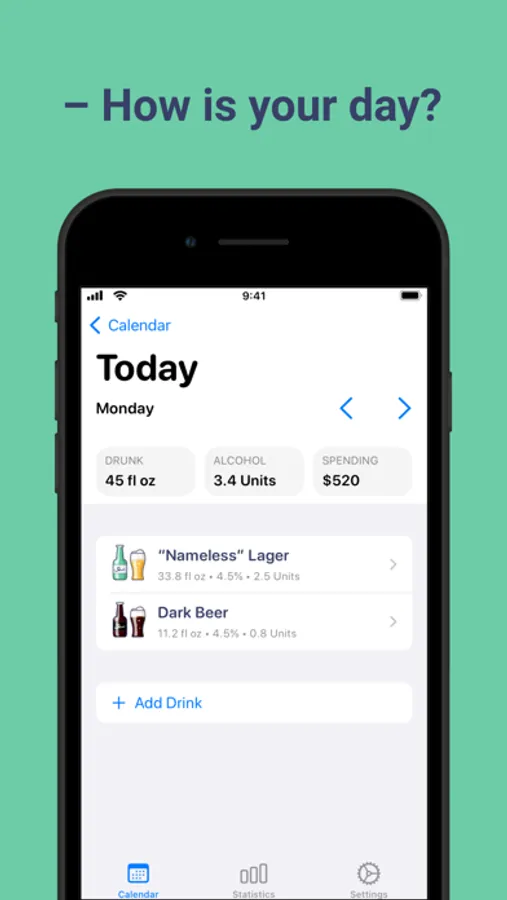 Record alcohol expenses and analyze expenses for the day, week, month, year.