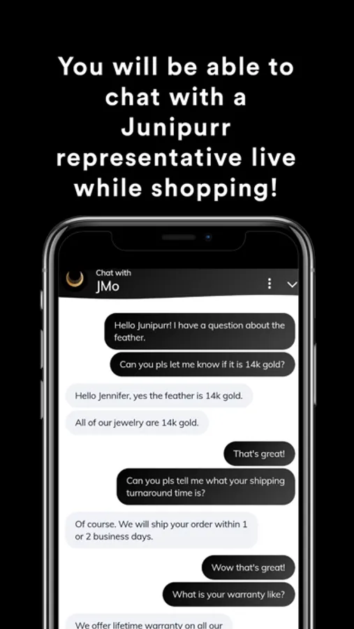 Our App also offers a live chat function which lets you communicate in real time with a Junipurr representative so that we can answer any questions you may have while shopping.