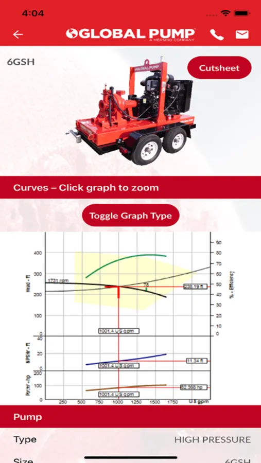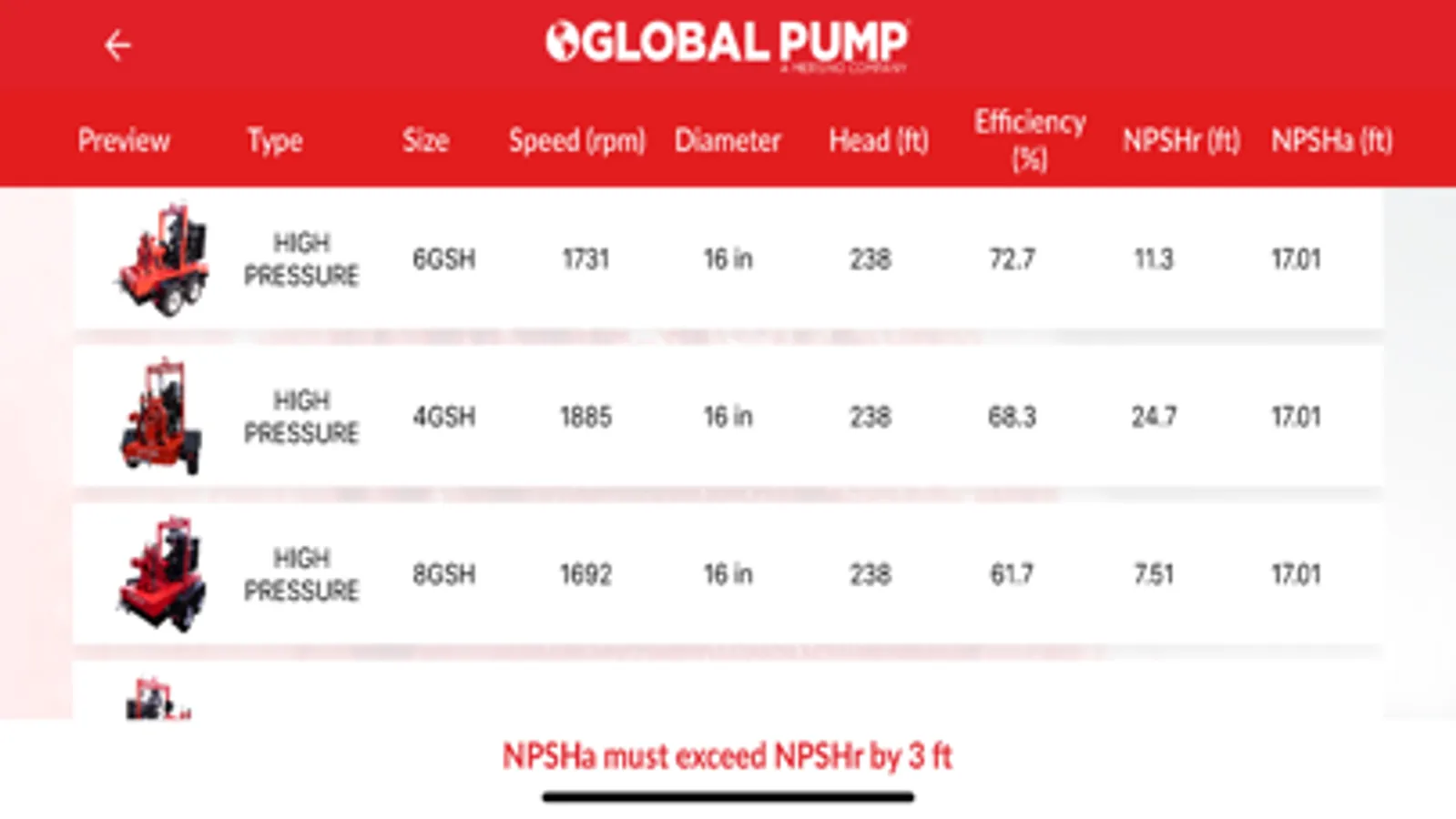 Pumping system analysis on the go. Global Pump Selector allows you to analyze your pumping system in the field so you can determine your desired duty point and take you straight to the optimal pump selection for your specific application. With features such as an NPSHa calculator, TDH calculator, Integrated Pump Selection, and more. Complete a pump submittal package on the go from you mobile device and even send as a PDF right from your device.
