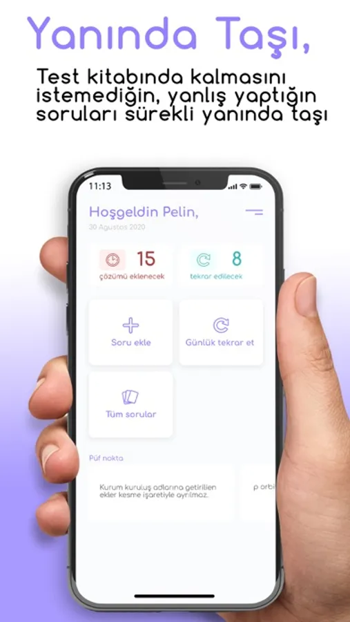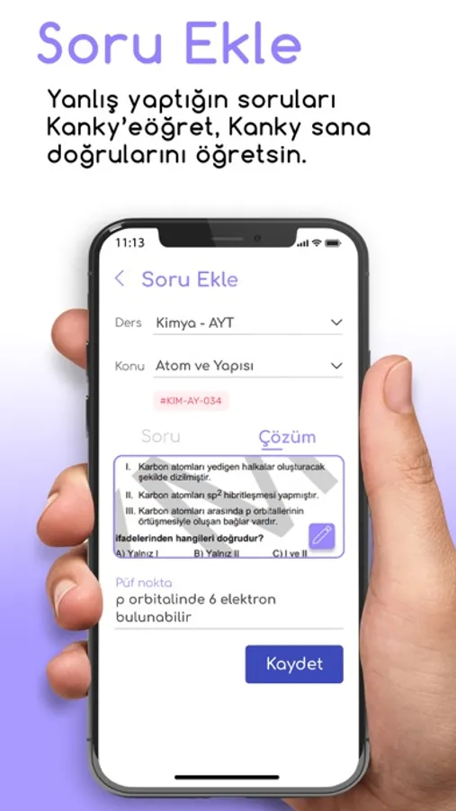 Yanlış yaptığın soruların çözümünü Kanky’e püf noktası ile birlikte ekle. Kanky sana istediğin zamanlarda hatırlatsın. Yanlışlarını doğruya çevir ;)