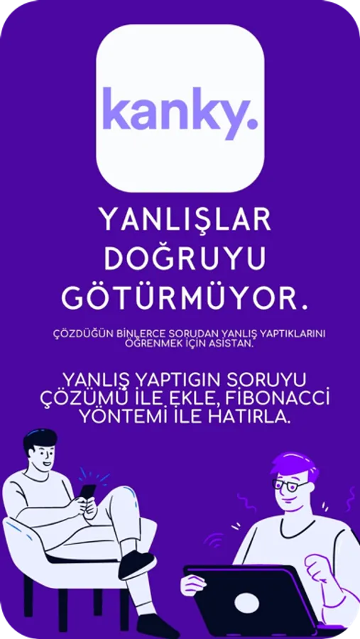 Kanky çözemediğin soruları daha sonra çözmen için sana hatırlatan, çözdükten sonra pekiştirmen için sana destek olan bir uygulama. Kanky ile eksiklerini pekiştir.