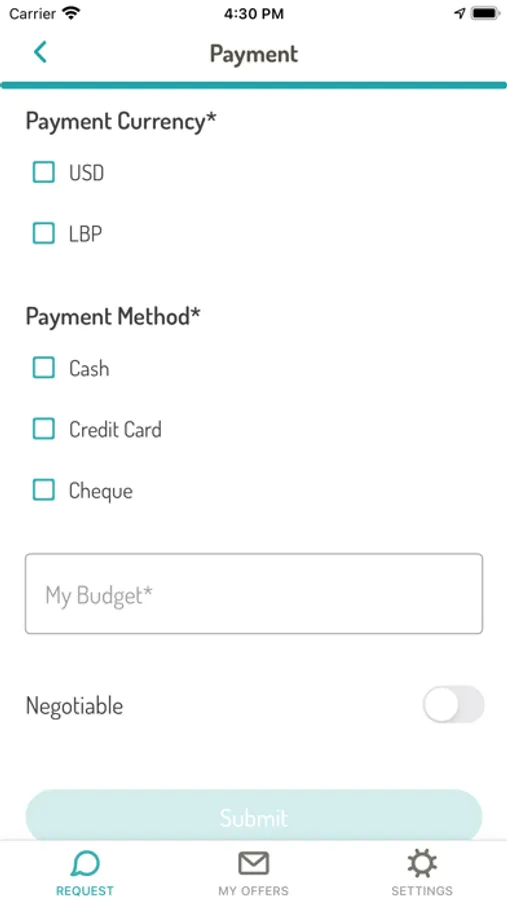 Now sit back, relax, we will do the job for you. Select your items, list the specifications, define the budget and choose your payment method. Your request will reach all potential providers around you. The next step would be reviewing the received offers and choosing the one that suits your needs and budget the most!