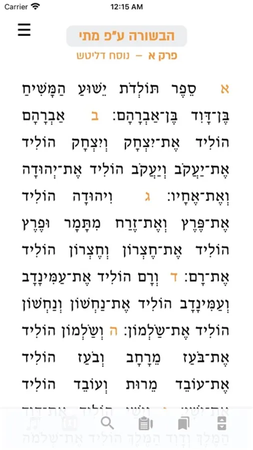 אפליקציה קלילה ומהירה ללא צורך בחיבור לאינטרנט לקריאה של הברית החדשה (מודרני ודליטש) ושל התנ"ך (מסורה ו"העדות"; התנ"ך בעברית מודרנית) בשפה העברית.