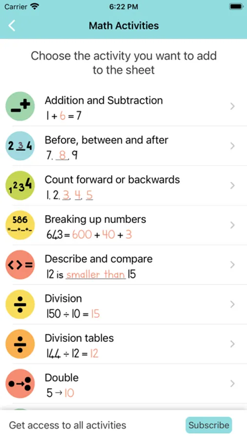 - Worksheets can also be shared or printed from the app.