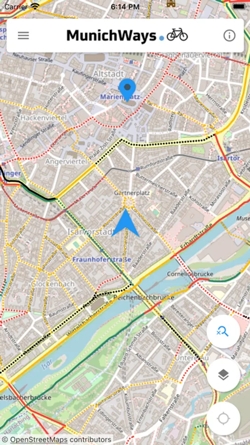Mit der MunichWays App findest Du die Fahrrad-Route in München, die für Dich gerade passt, je nach Tageszeit, Wetter und Laune. Unsere Fahrrad-App zeigt Dir die Möglichkeiten. Wenn Du Dich in München überhaupt nicht auskennst, empfehlen wir zusätzlich die Navigation während der Fahrt mit Profi-Apps wie beispielsweise von Bike Citizens.