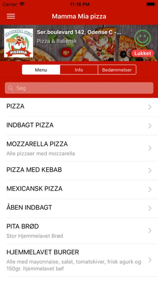 Bestil pizza, burger, pasta, m.m. med få tryk, nemt og hurtigt!