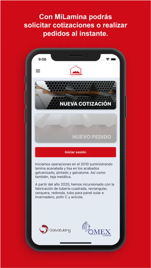 Bienvenidos a MiLamina, la única app del mercado que permite cotizar tu pedido de MiLamina con trato directo con el comercial.