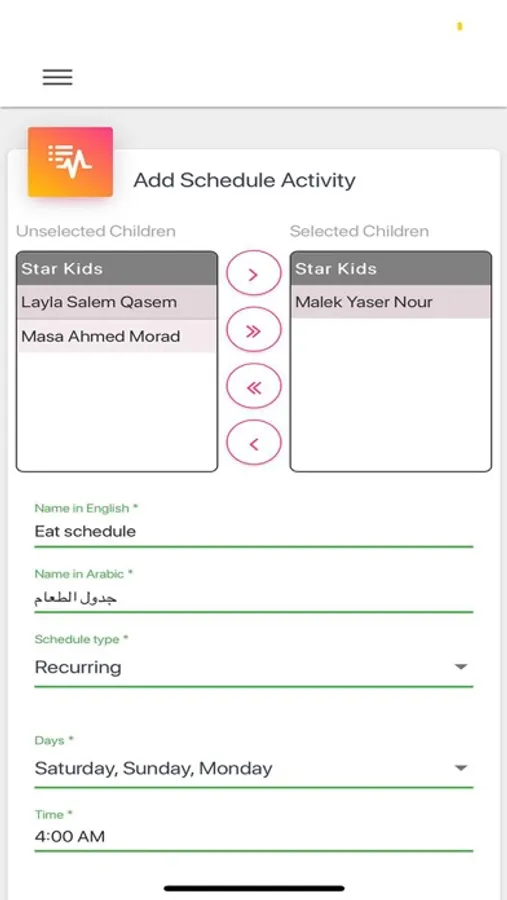 An application for managing logistical matters and internal operations of nurseries and kindergartens, including managing employees' and children's files and their activities in addition to distinctive features such as scheduling activities simultaneously, and a social media platform for the nursery that shares its news and opinions with parents, knowing the attendance and absence records for children and the administration staff and a system of evaluation for children periodically or monthly in Specific areas