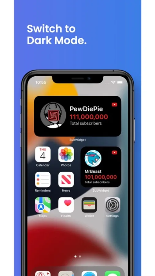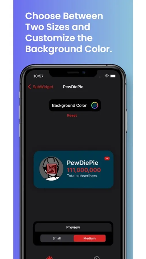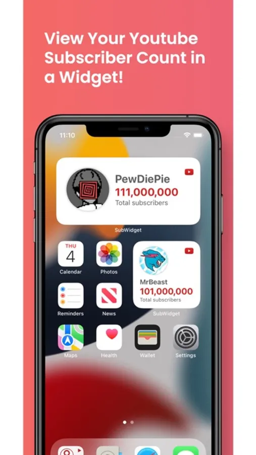 SubWidget is a widget that displays your current YouTube subscriber count on your Home and Lock screens