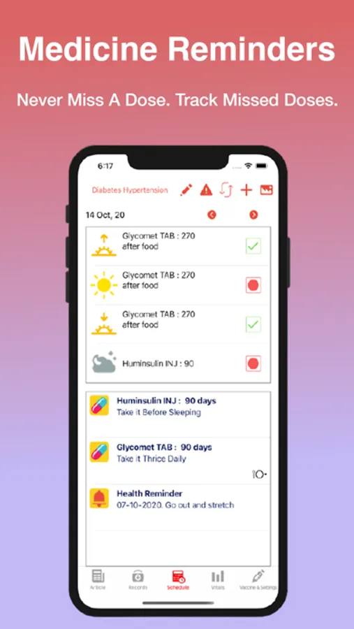 - Health app gives health reminder for high blood pressure, heart and diabetes treatment.