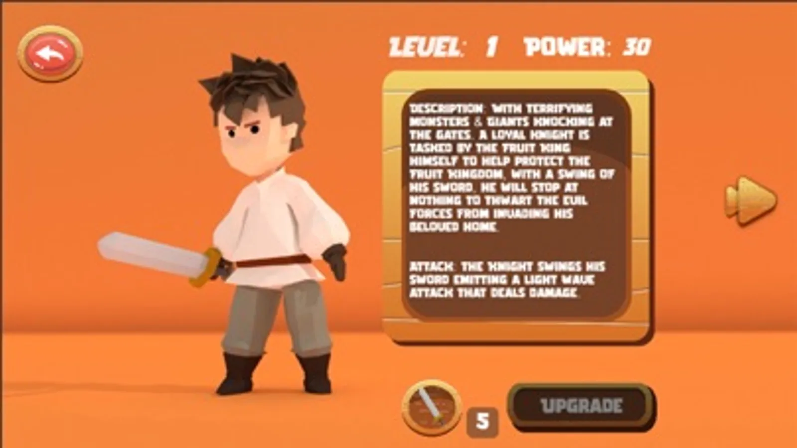 In a Fruit Kingdom, there exists a bountiful Fruit Tree that bore Fruits which grant whoever eats it extraordinary powers. The Fruit King assigned his soldiers a fruit of their own, to call on their ancestors, to bestow upon them the ability become Fruit Knights. Enemies from rival kingdoms try and horde these magical fruits for their evil purposes and it is up to our brave and strong Fruit Knights to save and rescue the Atis Land, Kaimito Castle, and Mushroom Forest from evils vicious attacks and to restore order and peace in the Fruit Kingdom.