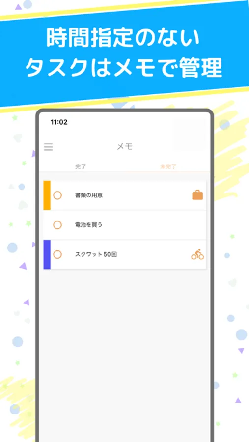 スケジュールされていないToDoを書きためておくことができます。登録後も日時を指定してスケジュールすることもできます。