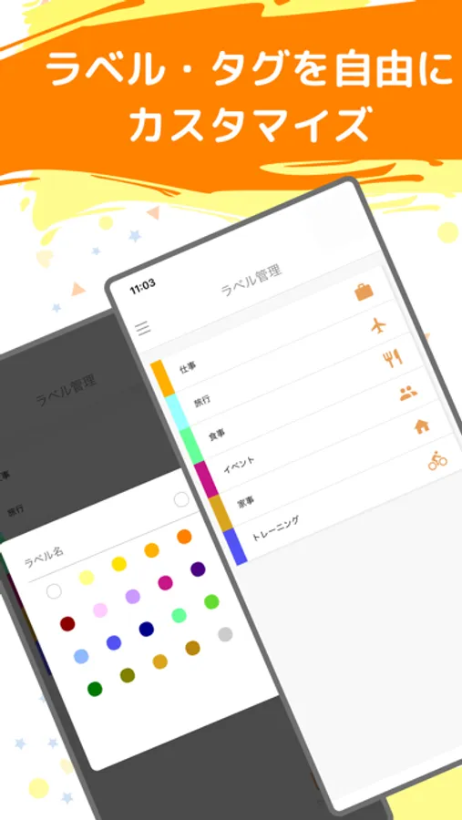 ◇ ラベルやタグを自由にカスタマイズでき、仕事や趣味といったあらゆる場面にあわせてToDoをカテゴライズできます。