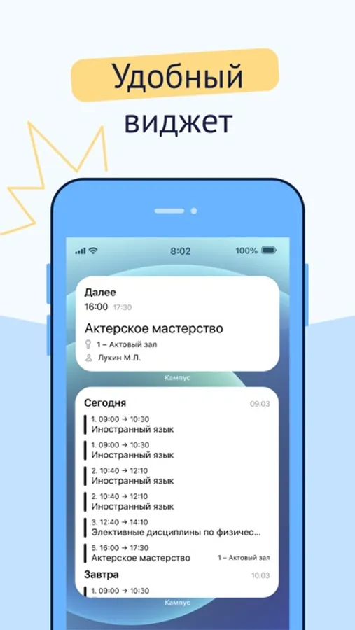 Быстрый доступ к актуальному расписанию, без захода в приложение.