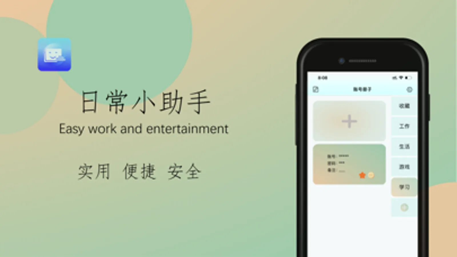 The software has the account storage function, too many accounts do not need to worry about forgetting the password. The software also has the memo function to record your life in real time, which is convenient and fast!