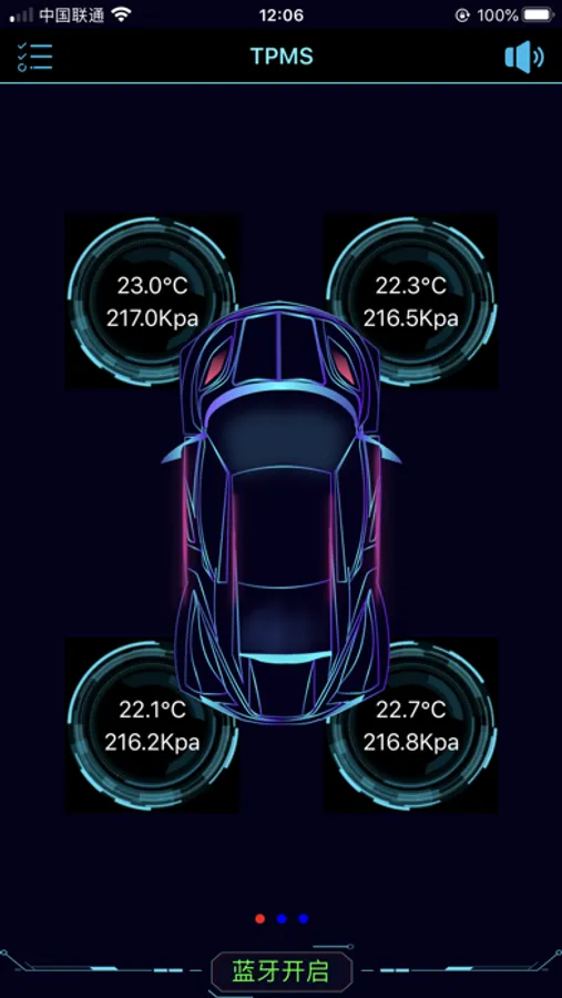 智能TPMS胎压监测App是一款配合智能胎压监测设备打造的手机客户端软件,用户可以通过手机App实时的查看四个轮胎的气压以及温度,同时还提供了轮胎气压报警功能,保证汽车轮胎处在正常的胎压范围内。