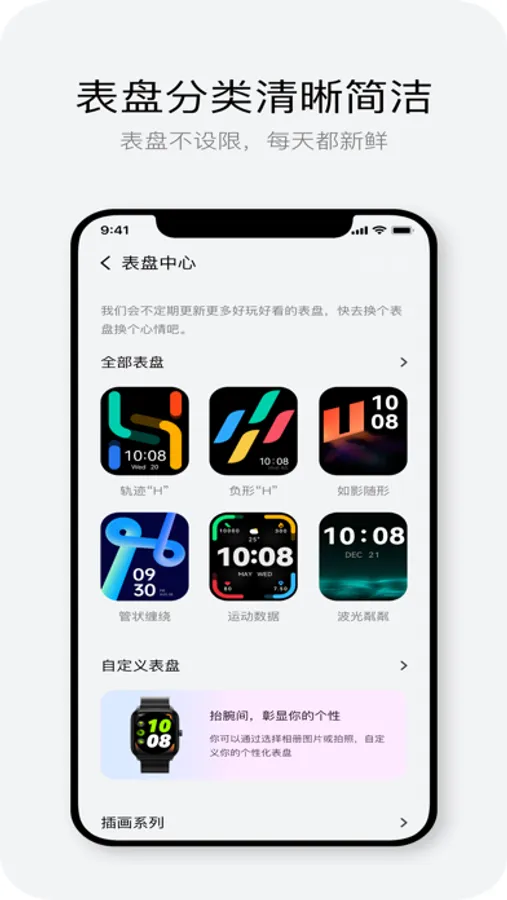 There are a large number of watch faces to choose from. You can choose your favorite watch face to synchronize with the watch according to your mood, and you can set your favorite picture as your own watch face.