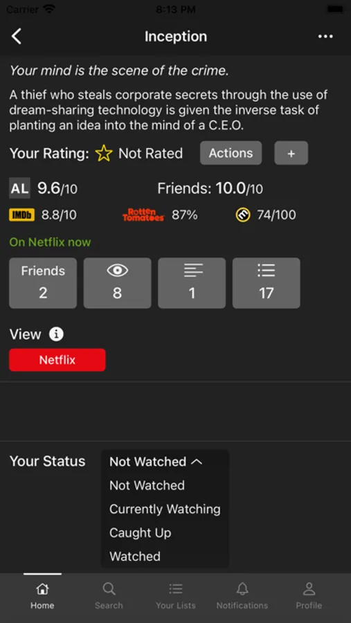 Add movies and shows to your lists to get notified when they come to your favorite streaming services.