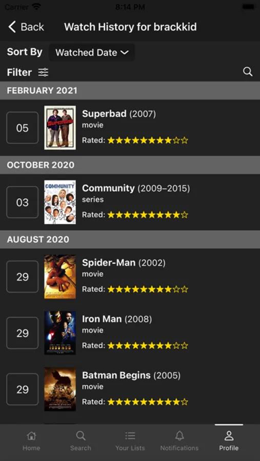 Track all Movies and TV Shows that you watch with AddToTheList!