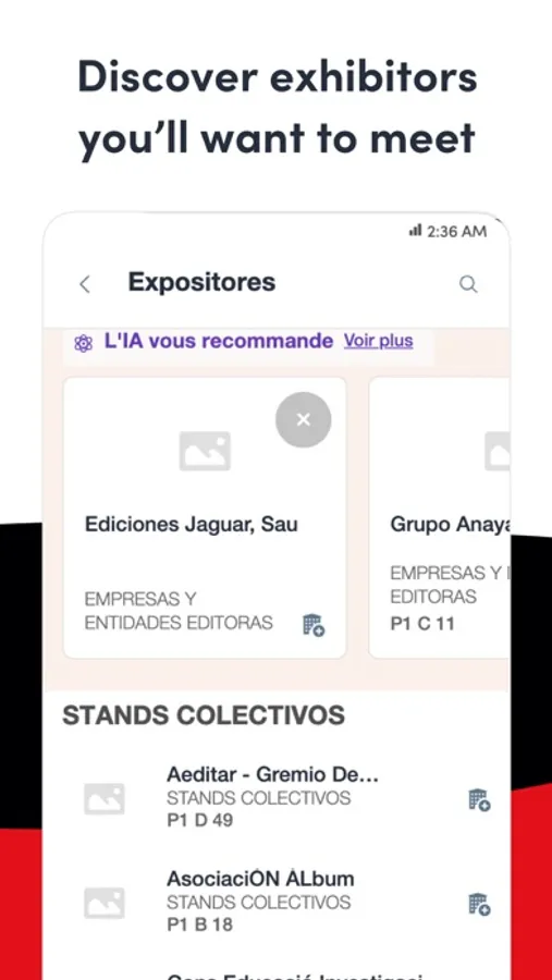 In the Liber 2022 app you can consult the complete catalog of companies participating in the show, with information about their location, contact details and also a selection of the products they offer at their stand.