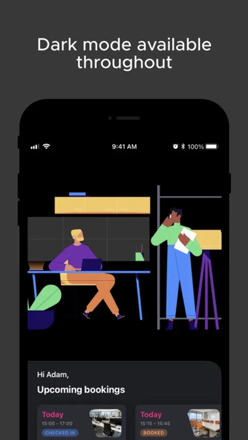 • Bookings status - Check into, or cancel reserved spaces on-the-go