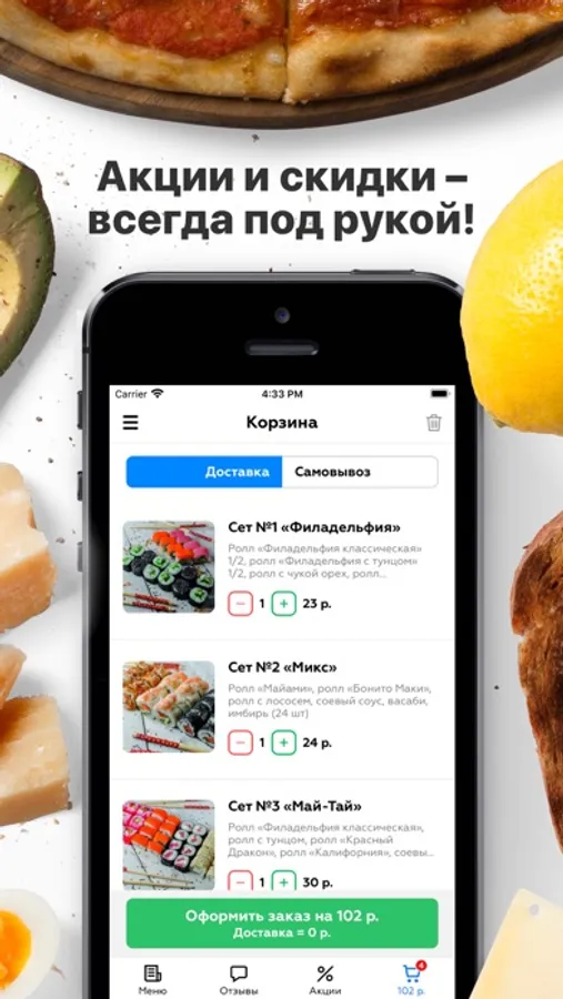 — Быстрый заказ с мгновенным подтверждением через приложение.