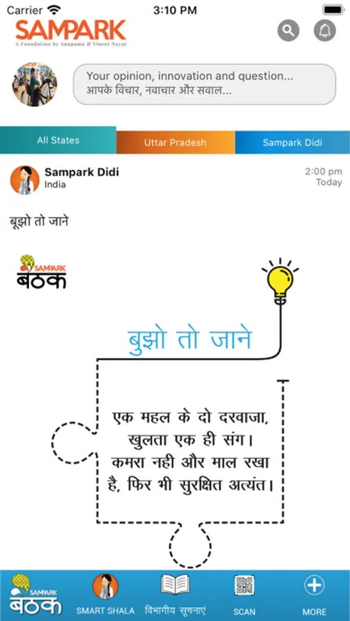 Designed and developed by Sampark Foundation’s Innovation lab, Sampark Baithak is one of India's largest learning and development platform for primary government school teachers and children in Hindi.