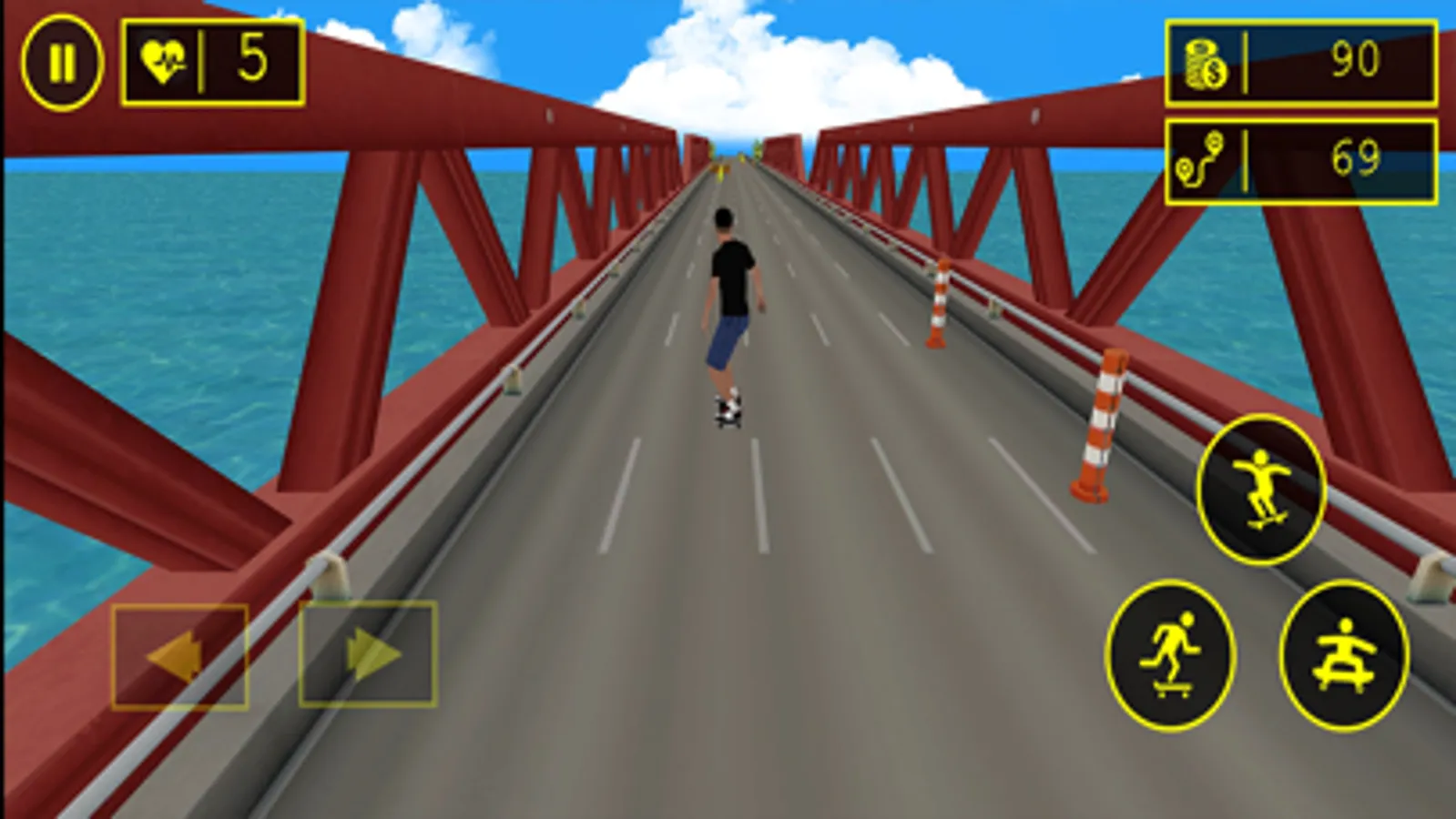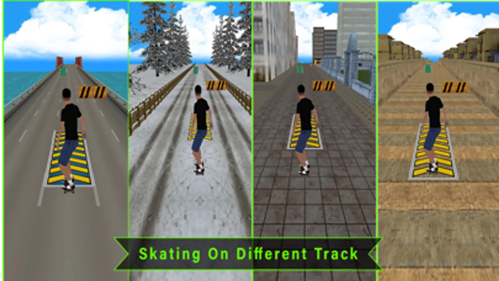Flip Skateboard Game has various tricks like jumping, speeding up and move left - Right. User need to jump over the obstacles on the road and enjoy the skating.