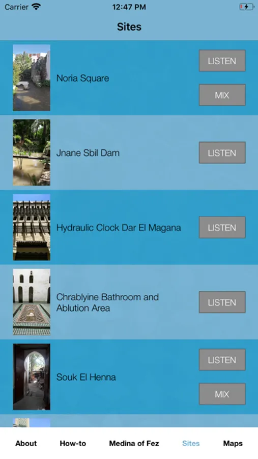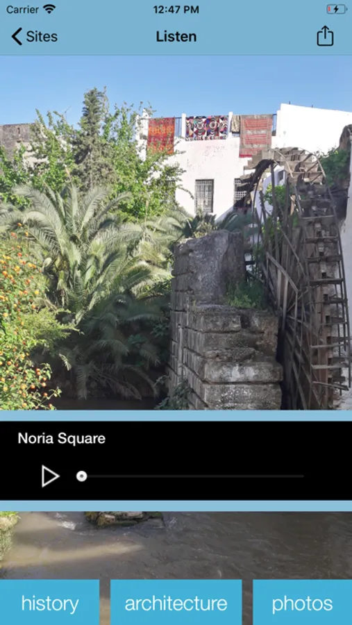 Music and Water Routes of the Medina of Fez is a mobile application in which Architect Aziza Chaouni and Composer/Sound Artist Susie Ibarra propose a walking meditation and a musical experience which invites the public to interact and contemplate the visible and invisible manifestations of water of the Medina of Fez along 7 sites. It also features a four-channel mixer, information about the history and architectural characteristics of the sites, and posts for musical creations and comments.
